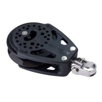 Harken 57 mm carbo ratchet block. Machined aluminium sheave with 8 facets to hold the line securely.